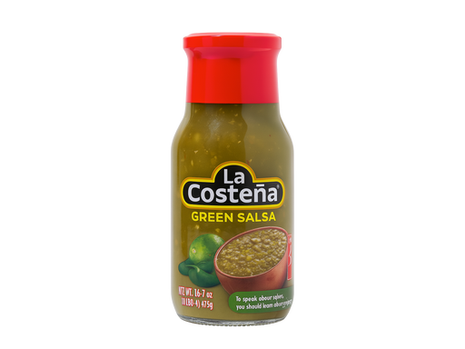 La CosteñaZesty green salsa made with fresh tomatillos and mild chili peppers. Perfect for tacos, nachos, enchiladas, and traditional Mexican dishes, adding ...